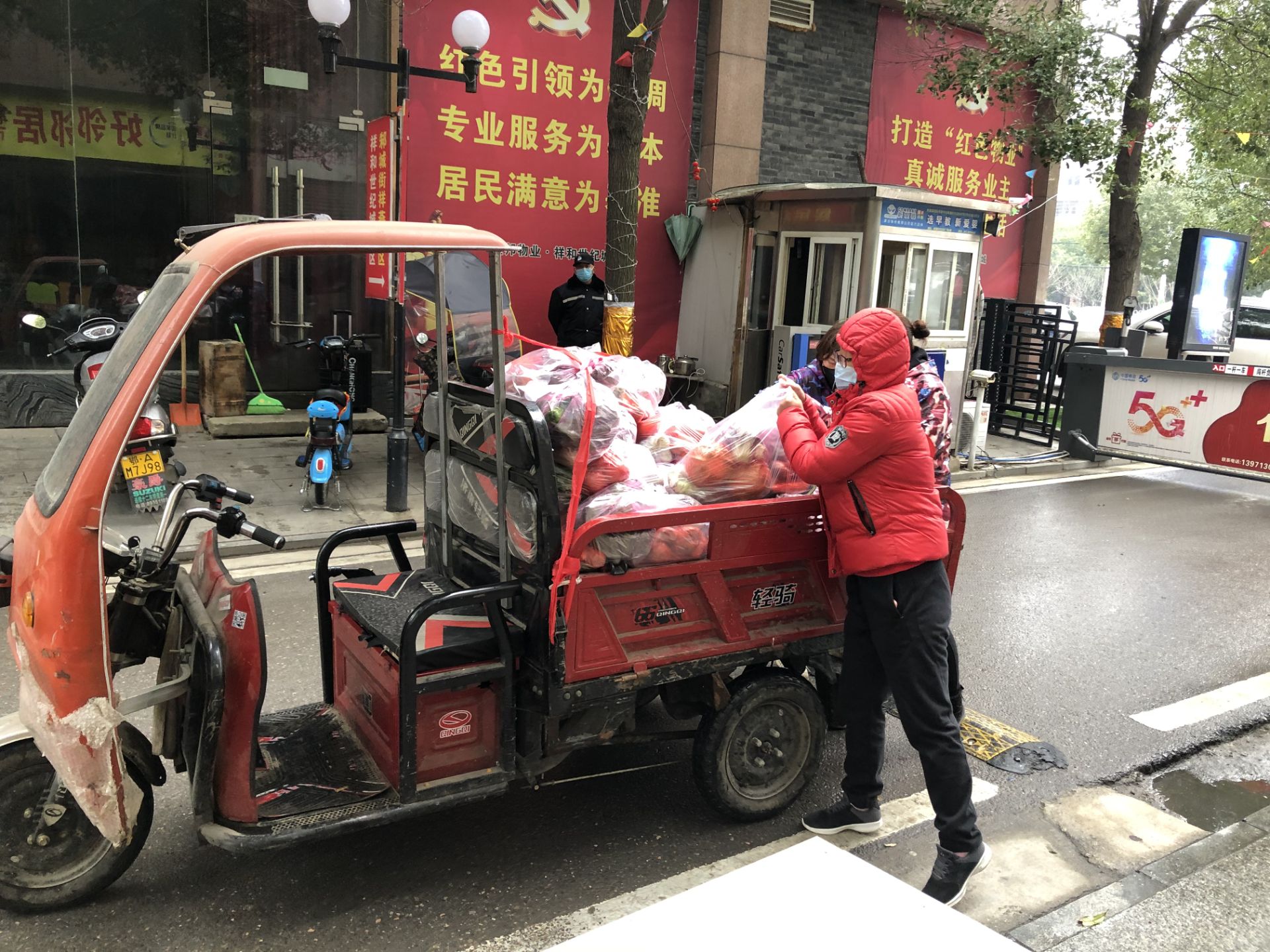 黄莉娜搬运帮小区居民买的水果和蔬菜