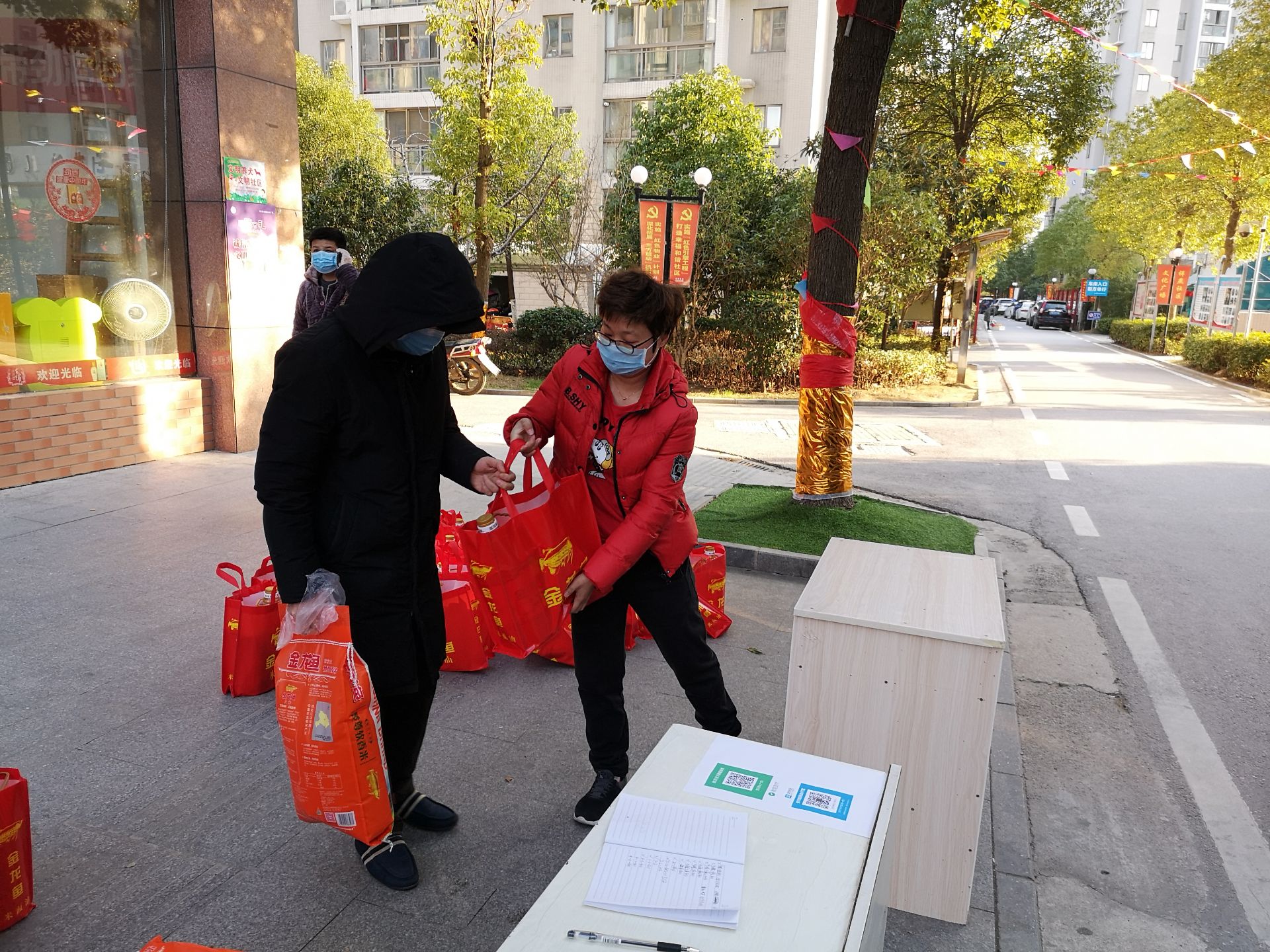 黄莉娜搬运分发采买的物资