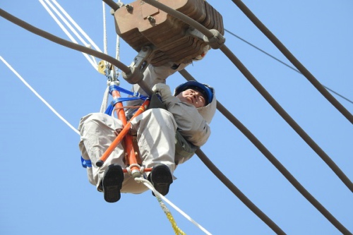 3月24日,兴安盟大地春寒料峭,蒙东兴安供电公司输电工区带电作业班早上6点到达±500千伏伊穆直流输电线路极Ⅰ、Ⅱ线961号塔。李祥作为首个蒙东地区±500千伏带电作业人员,负责完成复位跳线串重锤处间隔棒的穿销并补装丢失销针,这次任务对李祥来说即是挑战也是荣光。作业现场,他通过专业的“荡入法”动作进入电位,完成了穿销复位,随后,作业班成员王强和徐博文在工作区外辅助他补装销针,2小时34分钟的塔上作业完成,李祥长舒了一口气,总算是没有辜负公司的期望。14时13分,此次带电检修作业全部完成。据悉,这次带电作业可减少约1000万千瓦时外送电量损失。