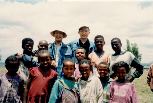图5:埃塞俄比亚送电线路工程,李洪磊、刘永刚(送变电公司)和当地的孩子们。