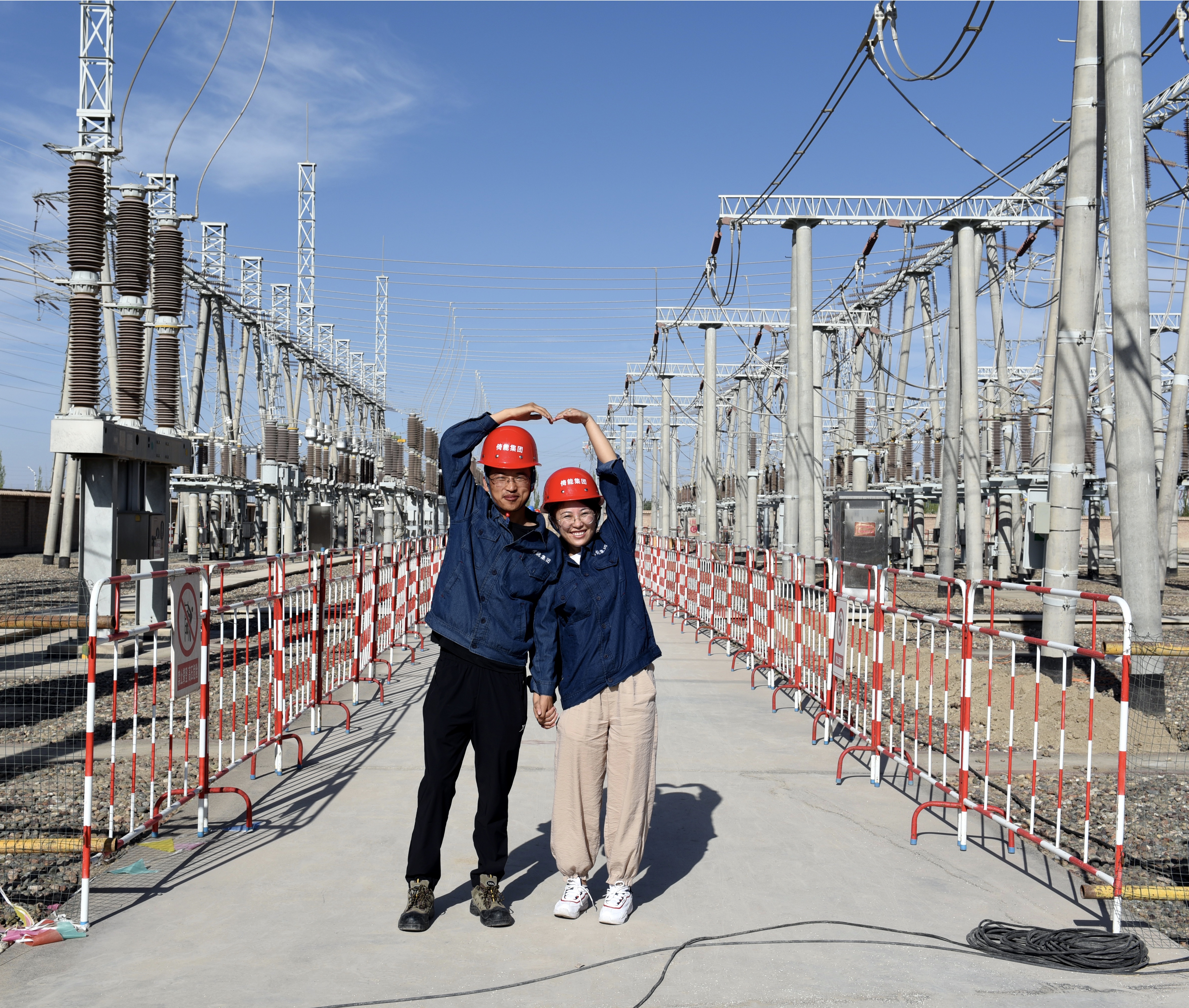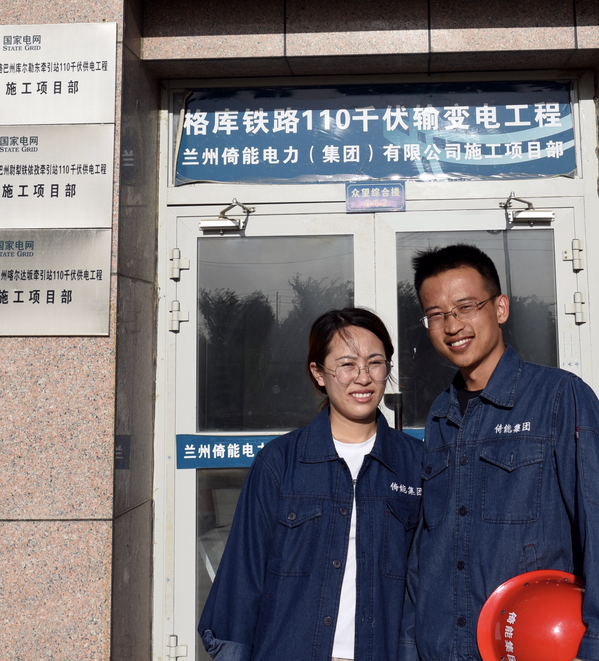 “身边有你,工地在哪,家就在哪!”,在新疆格库铁路110千伏输变电工程工地上的兰州供电公司倚能集团师正平和朱玉彤被大家称为工地上的最美夫妻!