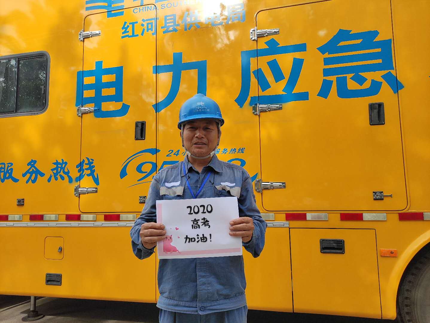7月7日,全国高考拉开序幕。红河县共有889名考生参加高考,红河县第一中学作为当地唯一的高考考点,设文科考场16个,理科考场14个,三校生考场1个,合计31个,另设3个备用隔离考场。为了确保高考用电,红河县供电公司配电运维班职工李荣平和同事们,在考场外汗流浃背地坚守着。