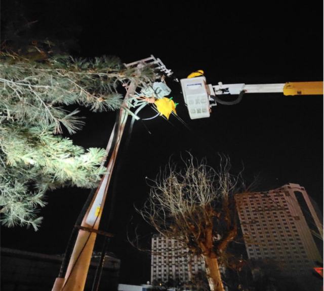 1月14日16时10分,天色已晚,带电班接到故障报修任务:“外力导致10kV西街线76号杆拉线断线、电杆倾斜,倒杆断线的情况随时有可能发生,请立即赶往现场进行带电处置。”熟悉线路情况的常利涛接到报修任务,心里一紧,因为他知道这条线路上有医院、供热公司、石油大厦等重要负荷,为确保疫情期间居民可靠供电,常利涛立即会同四名班组成员赶赴现场,此时夜色越来越深,常利涛要求抢修人员发动六台照明设备,他率先登上绝缘斗臂车开始抢修作业。此时,室外温度已经下降到零下20多度,历经三个多小时的奋战后,带电班圆满完成了此次抢修任务。(赵晶)