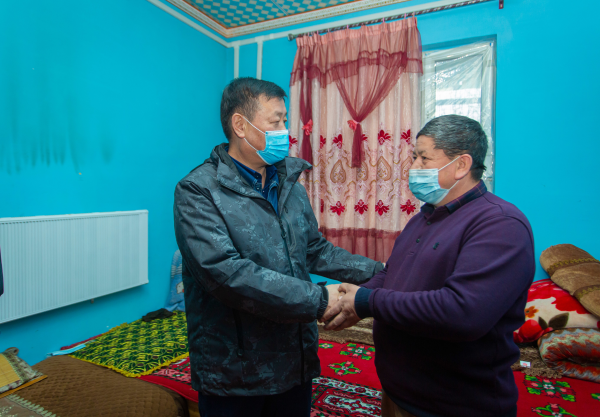 2020年3月10日,熊剑来到距和田市170多公里的“抵边村”奥米夏村电网升级改造现场,看望慰问施工人员,查看疫情防控、施工安全是否落实到位。高原降雪给施工带来不小挑战,他与现场人员一起商量解决方案,保证工程顺利推进。