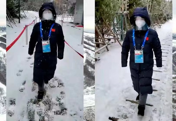 冬奥会期间,冬奥村区域遭遇多次强降雪天气,最低气温达到零下29摄氏度。由天气寒冷,李莉戴的棉帽和防护面罩上方都起了冰霜,从口罩里呼出的哈气使得眼镜变得模糊并结冰,看不清前方的路。为此,李莉干脆将眼镜摘下,然后继续前行。为了保证可靠供电,已经49岁的李莉和男同志一样,在严寒中顶风冒雪对责任区内的3个开闭站进行巡视检查,确保供电设备安全稳定运行。