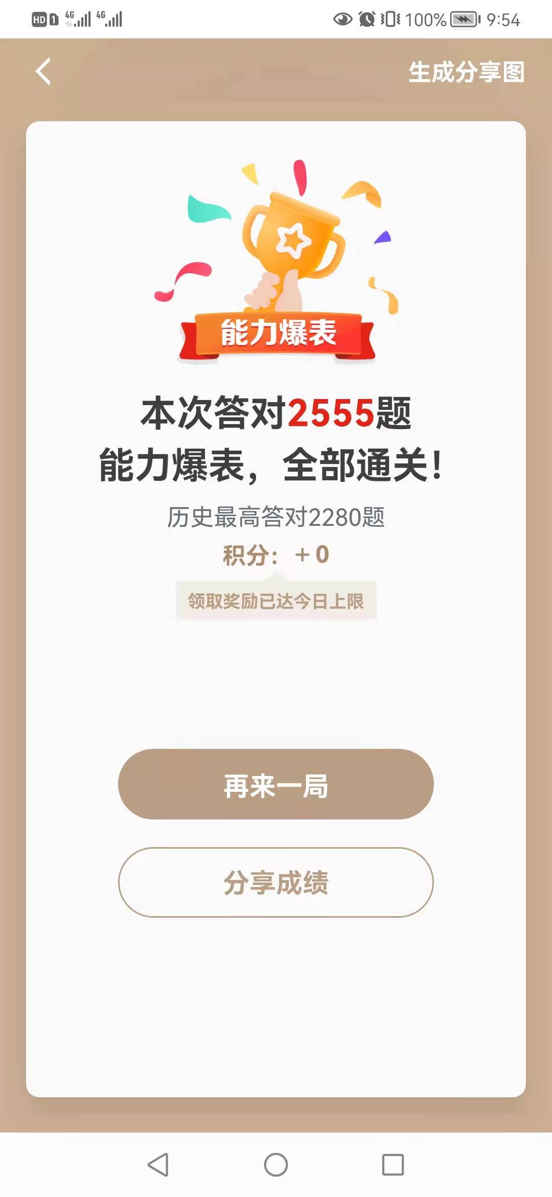 中国电力新闻网讯 通讯员 李美平 报道 “本次答对2555题,能力爆表,全部通关!”3月9日晚上9时54分,看着手机上弹出的学习强国挑战答题通关页面,锡林郭勒盟正镶白旗供电公司李美平露出了开心的笑容,成为该公司学习强国第一位“通关达人”。