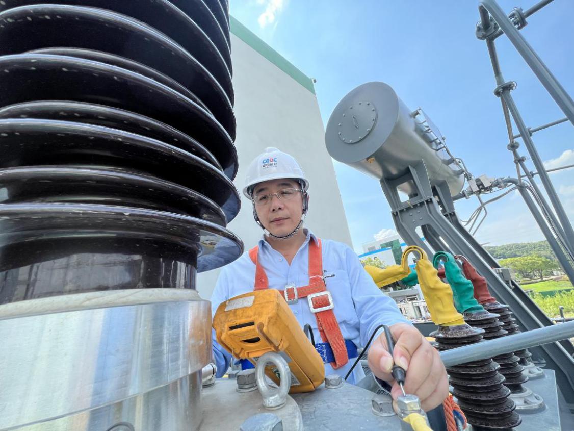 吴琦在项目现场检查变压器套管末屏接地及测量绝缘电阻