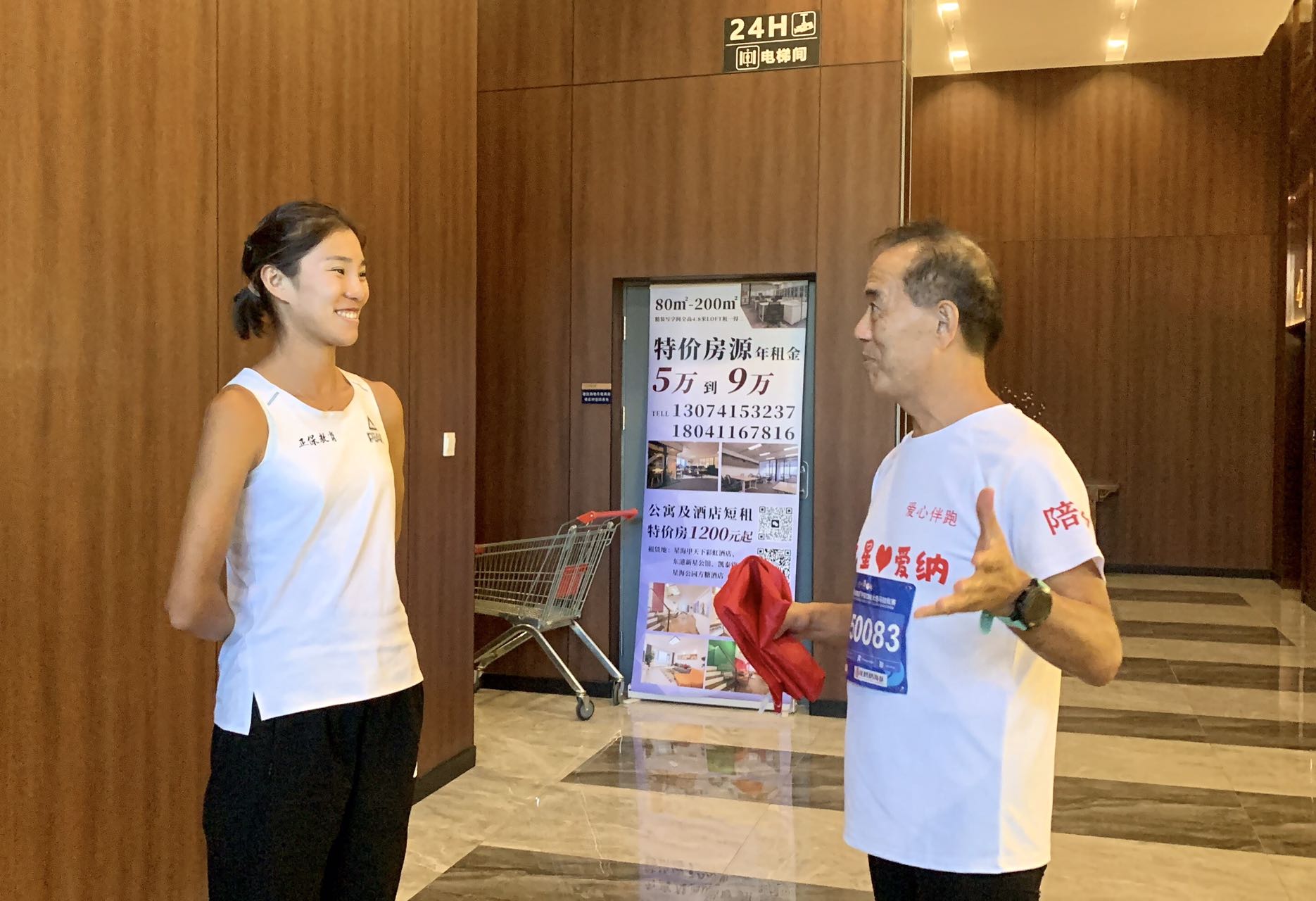 赛后,热心公益的焦安静与国网大连供电公司退休员工、大连海之星跑团团长徐守国就爱心公益进行了交流。