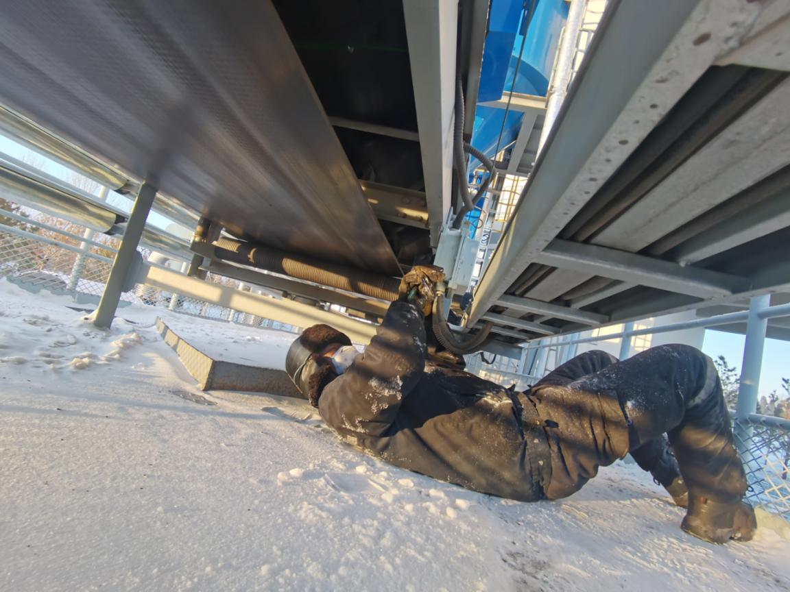 整个冬天,检修部全员都要频繁爬高、攀低、入筒、出仓,在寒风与高温间反复来回,经历着“冰火交加”的巡检生活,在黎明、在深夜守护着皮带安全、系统稳固,守护着一方温暖。