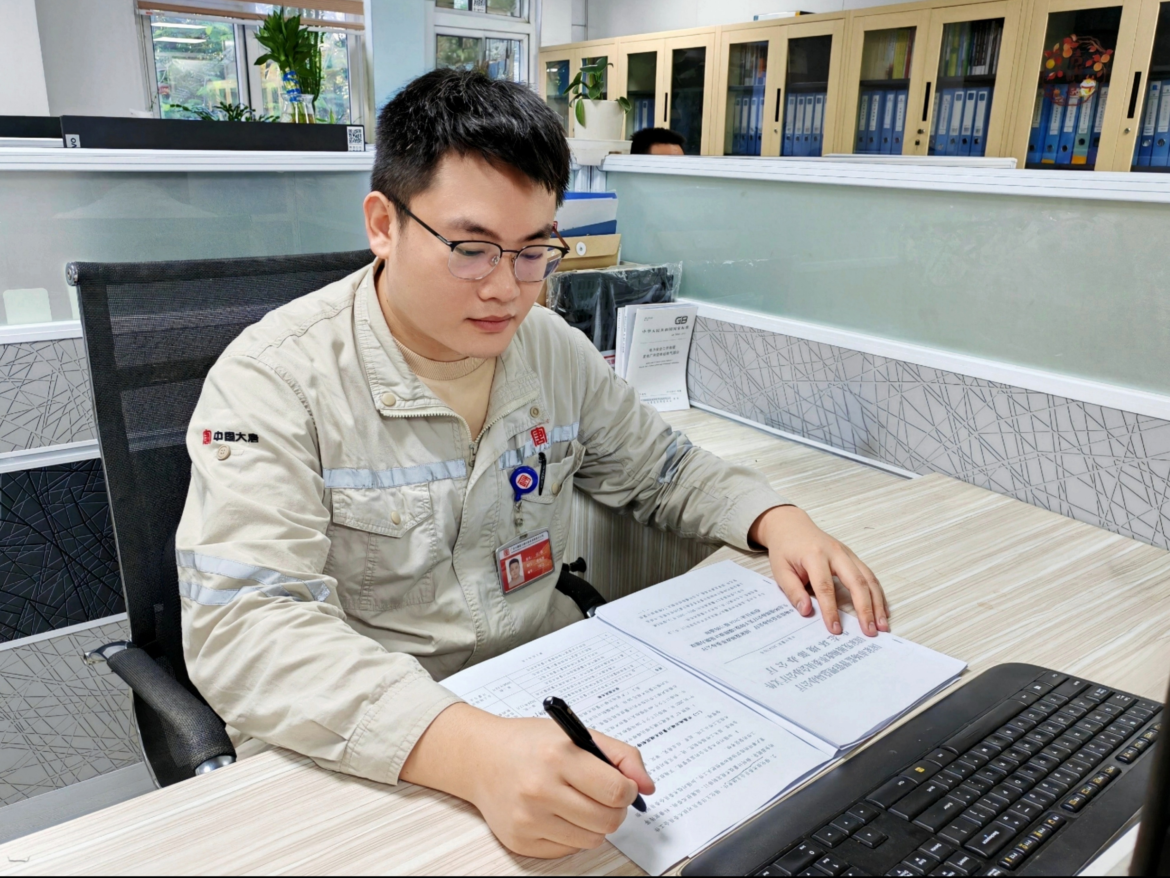 从得知竞赛起,徐煜便全身心地投入到赛前准备中。他夜以继日钻研碳排放管理的专业知识,从宏观的政策法规到微观的减排技术,不断提升自身理论水平。面对燃料采制化理论、实践知识储备不足时,他迎难而上,积极调整心态,到燃料化验班学习,向同事虚心请教,了解实际操作中的问题和难点,不放过每一个细节。那些堆积如山的资料、密密麻麻的笔记,见证了他的努力与执着。