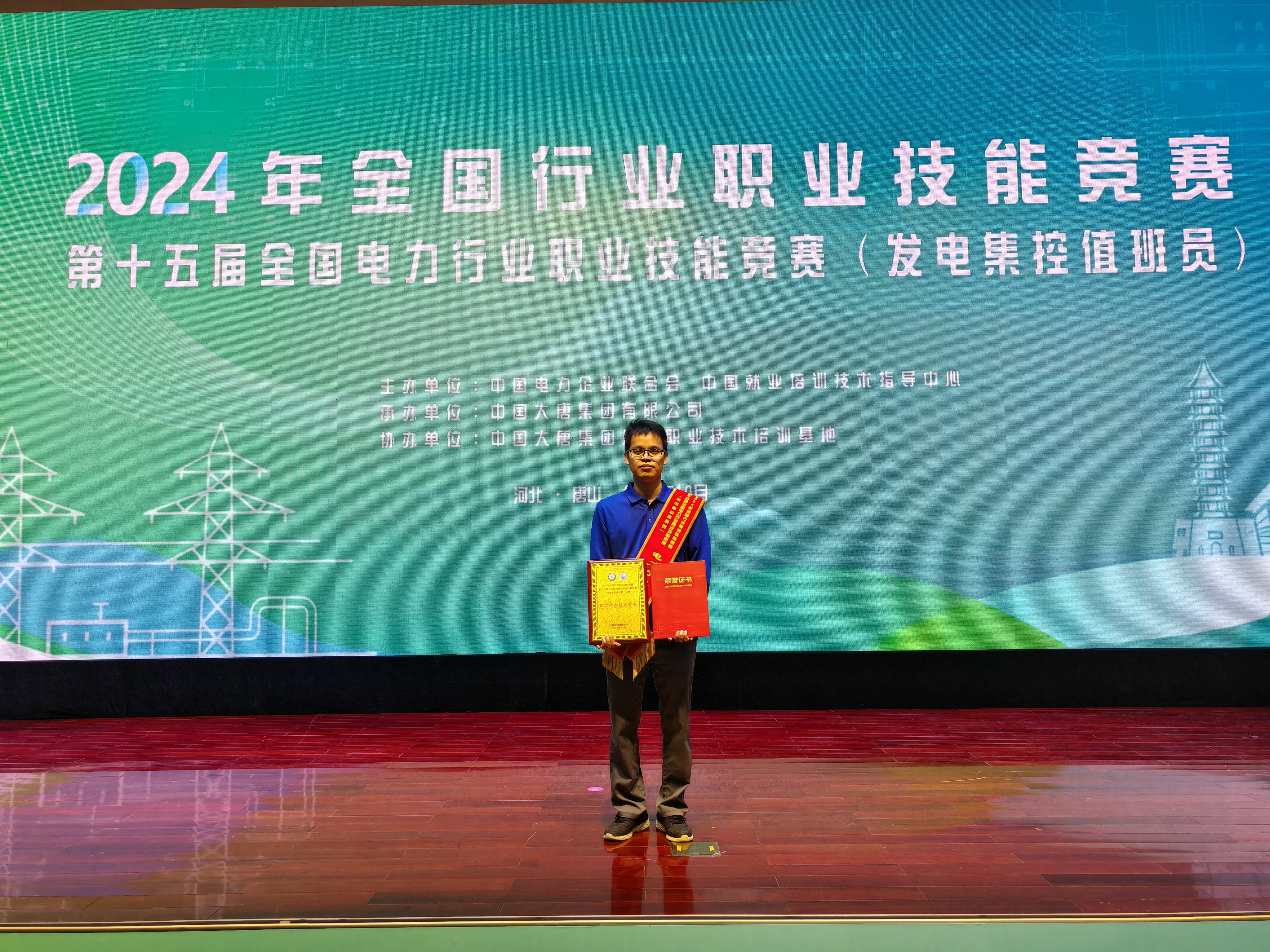 2024年,他被选拔参加第十五届全国电力行业职业技能竞赛(发电集控值班员),这场竞赛的备考之路漫长而艰辛,历时半年之久,且需经过四轮严苛选拔,竞争激烈,压力巨大。尤为一提的是,备赛期间恰逢妻子怀孕。由于长时间的驻外培训,陈清波无法照顾妻子,内心充满了愧疚与不安。但妻子坚定的支持给予他无尽的动力和勇气。备赛期间,他心无旁骛,全力以赴,将集控运行技术与各类突发状况紧密结合,反复钻研,不断突破自我,最终在强手如林的决赛场上脱颖而出,不仅为团队赢得了团体一等奖的殊荣,更以个人二等奖的优异成绩为自己的职业生涯增添了浓墨重彩的一笔。当得知自己获奖的消息时,陈清波激动万分,他深知这份荣誉背后凝聚着家人的鼓励与支持,也深知这份荣誉将是他送给刚出生的孩子最好的礼物。