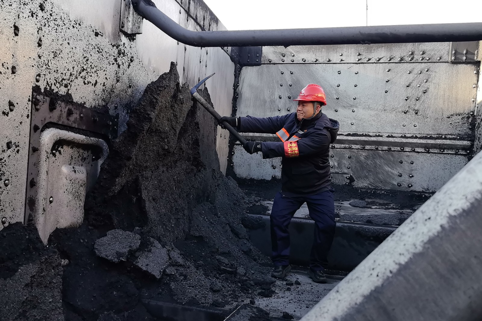 他们四五人一组,抄起大镐、铁锹和大锤,对冻煤展开“攻击”,一锤锤敲碎、一铲铲清除,金属的碰撞声与煤块落下的声音交织在一起,响彻清车场。