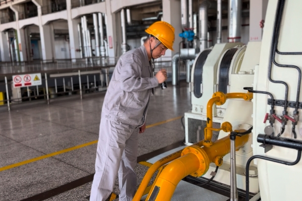 在汽机厂房内,机器的轰鸣声交织成一首特殊的交响曲,司机张立志正全神贯注地对汽轮机进行巡视。汽轮机作为电厂的核心设备之一,其运行的稳定性直接关乎整个电厂的发电效率,因此,每一次巡检都容不得半点马虎。只见他先是俯下身,用专业的听针紧贴部件,耳朵微微颤动,不放过任何一个细微的声响,凭借多年积累的经验,去分辨声音是否正常。接着,他轻轻触摸设备表面,用心感受设备的振动情况,从振动的频率和幅度来判断设备运行是否平稳。同时,他还密切关注着各类仪表的数据,对温度、压力等参数进行详细记录,确保每一个数据都在正常范围内。