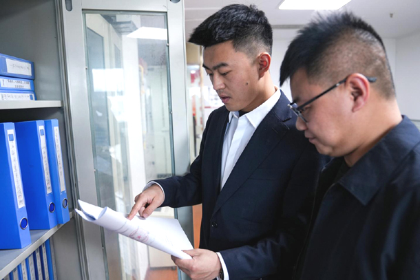 甘秀超和同事查阅工程建设资料。