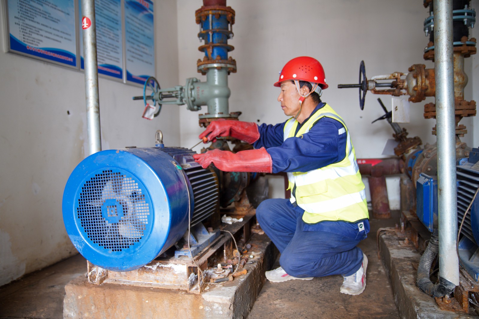贾新平正在启动水泵浇灌山上植被。