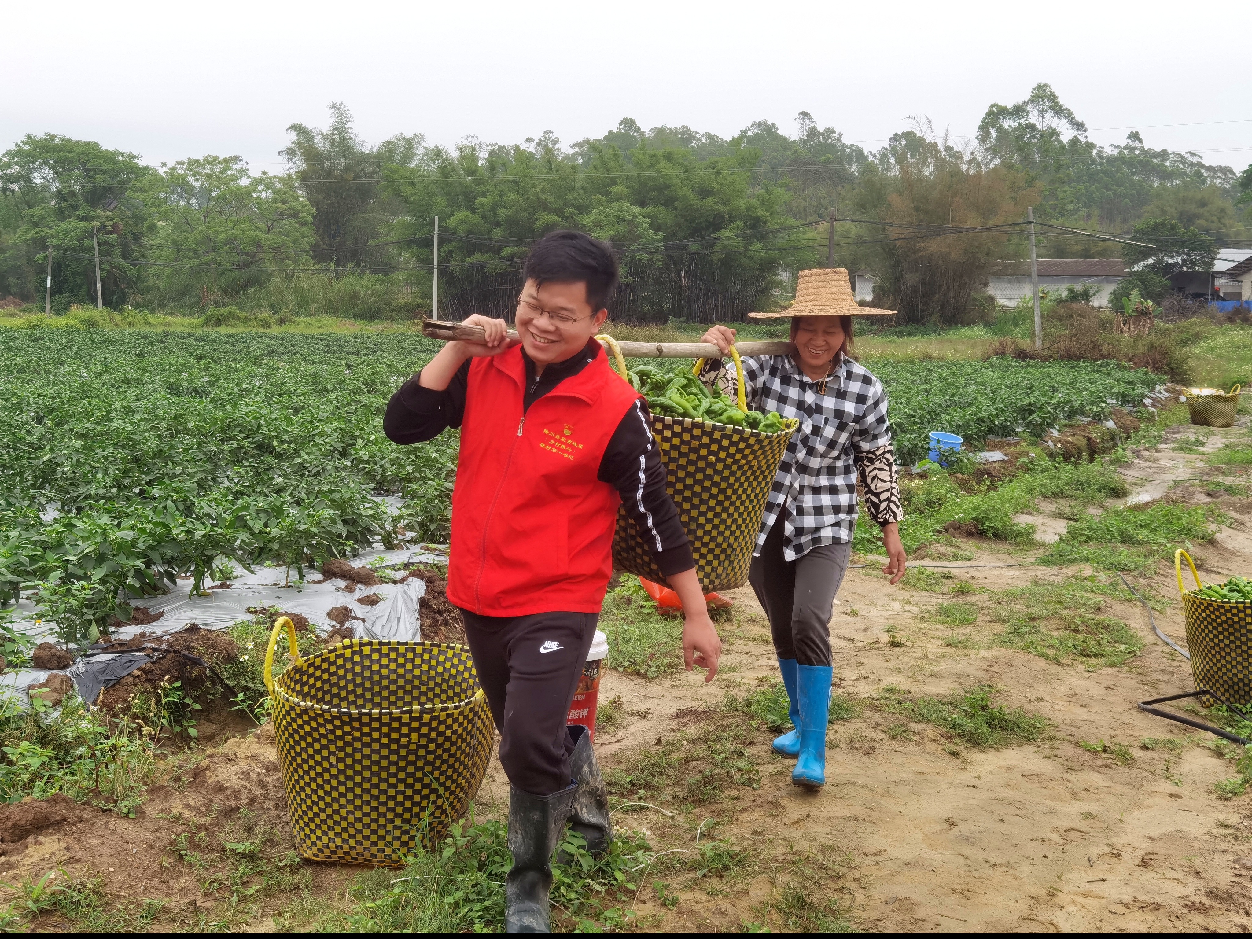2024年3月8日,驻村第一书记吕汉坤带领村干部到基地协助辣椒采摘出货。林锋 摄