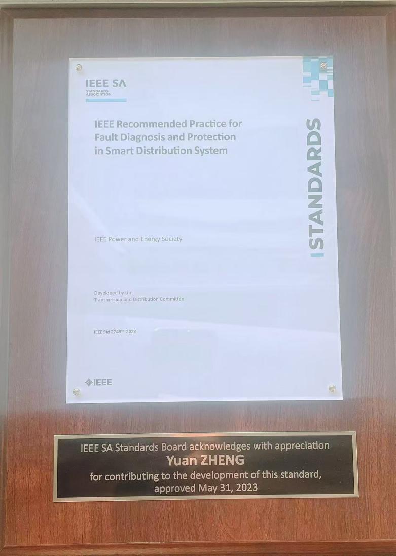 2020年,郑圆作为P2748工作小组秘书,参与到(配电网不同运行方式下的故障诊断和保护配置策略)的编制之中。2021年至2022年,该标准的某核心章节接到颠覆性的评论意见,标准报送工作陷入僵局。作为工作小组秘书,郑圆本着对标准质量负责的态度,顶着项目严重超期的压力,针对该章节的原稿和新的建议稿,逐字逐句的做了大量的中英文校核、对比分析,确保了标准的技术正确和表述严谨,最终得到工作组主席的支持,重启该章节编写。郑圆及团队成员的努力付出,收获了IEEE标准管理委员会的一致肯定与感谢。