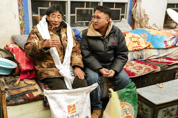 每到节日,普布多吉都会走进困难家庭,送去温暖和关怀。70多岁的古拉大叔和老伴儿相依为命,孩子们都在外打工,老两口的生活起居成了他时常牵挂的事。隔一段时间,他就去陪两位老人唠唠嗑,问问最近身体怎么样,缺不缺什么东西。2024年2月18日清晨,天还飘着小雪,普布多吉刚到居委会办公室就接到了电话,说古拉大叔突发疾病,疼得直冒冷汗。他知道在高原,一旦身体出现问题,都不能忽视,立刻联系了救护车,还亲自跑到老人家里,帮忙收拾好住院需要的东西。到了医院,他跑前跑后地帮忙办理住院手续,让医院护士都误以为他是古拉大叔的亲儿子。一周后老人顺利出院,他带着水果和保暖用品,又一次来到古拉大叔家中,看看大叔身体恢复的情况,并对大叔讲:“大叔,您安心休养恢复,家里有什么事儿您随时跟我说。”
