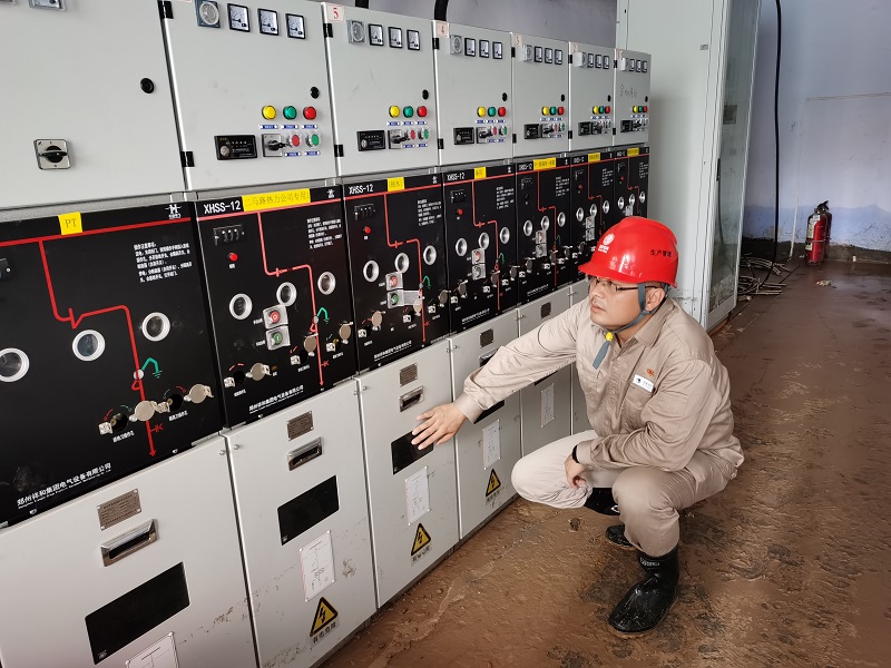 大雨过后积水严重。黄旭在齐腰深的积水中巡查设备,发现现场电力设施损坏情况比预想的更复杂。整理物资设备、协调抢修事项、巡查供电线路、排除设备积水……黄旭奔走在各点位间,当天就恢复了金水区4条10千伏线路供电。