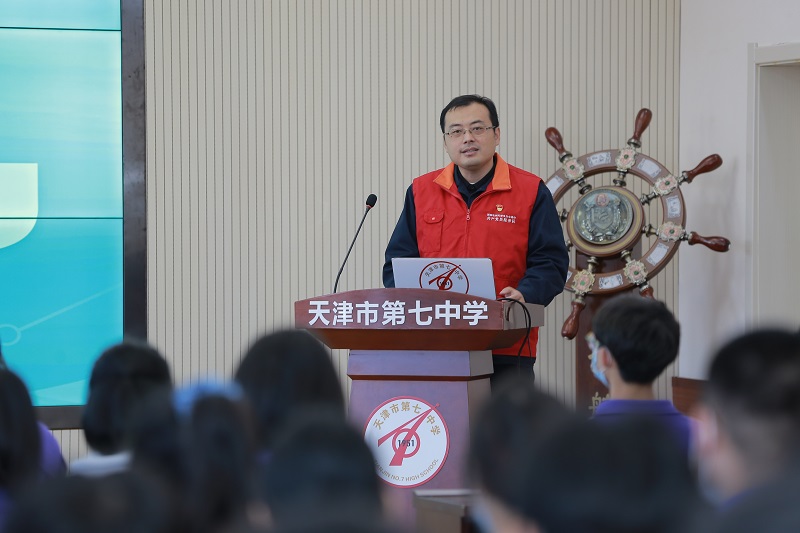 黄旭在天津市第七中学讲授电力科普知识。
