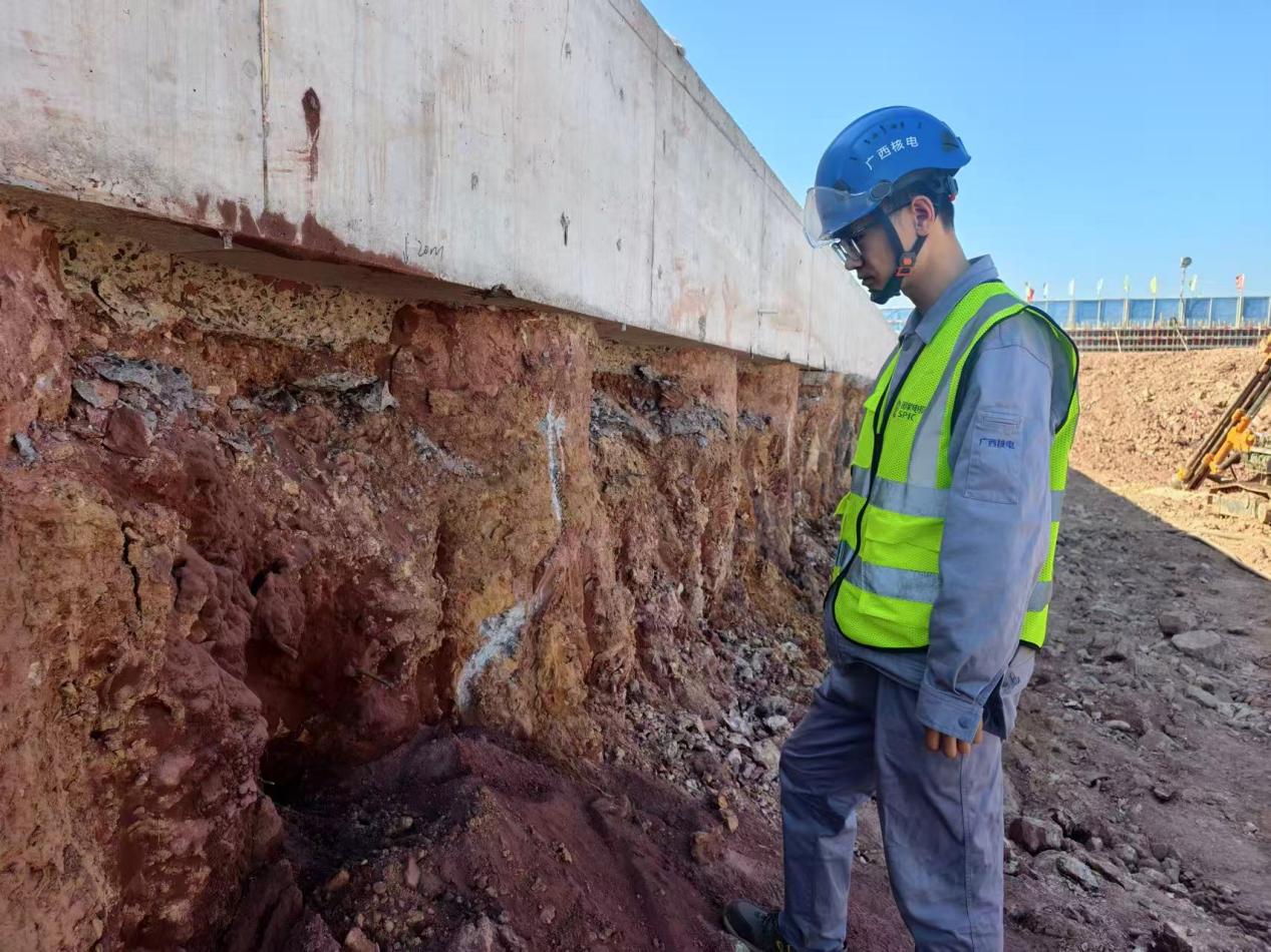 白龙核电项目的地质条件对基坑边坡稳定性和施工安全都提出了要求。特别是在92根预应力锚索钻孔施工过程中,由于地下水丰富,锚索成孔困难,周阳和团队多次组织专家、设计院、施工单位研究办法,反复计算寻求最佳解决方案。最终,通过调整锚索设计角度、缩短自由段长度,引入带护筒钻孔机等多种措施,成功攻克这一难题。