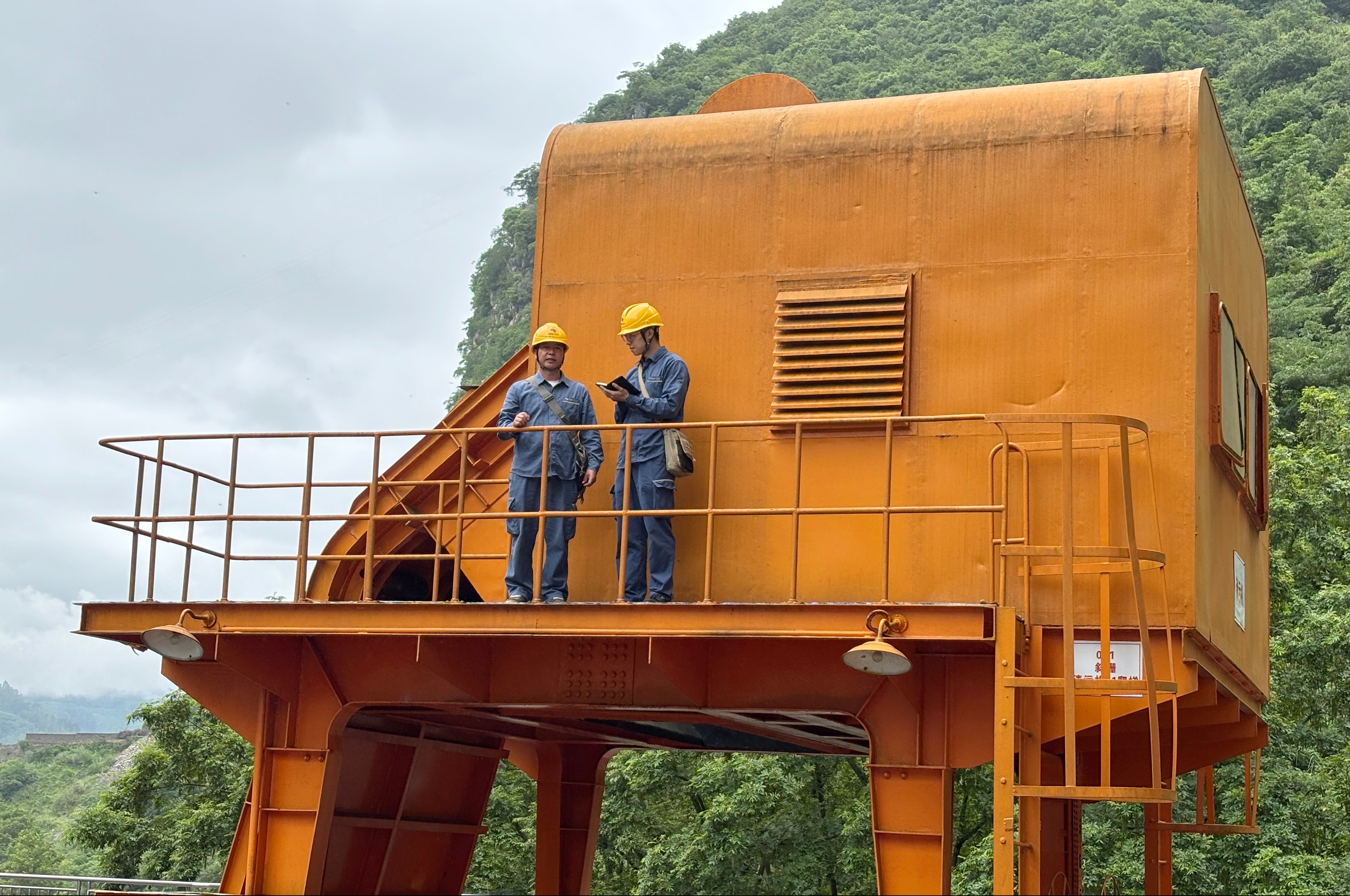 日常运维工作,进水塔直栅、斜栅巡检,左为周政坤。何莉英 摄