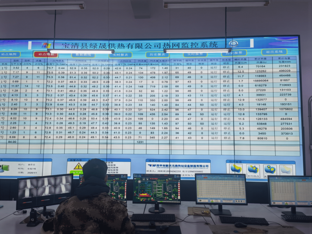 公司各岗位工作人员各司其职、协同联动。调度中心内,工作人员紧盯热网监控系统,实时监测各站点供回水温度、压力、流量等关键数据,密切关注设备运行状态及报警信息,精准调控各项运行参数,确保供热系统高效运转。