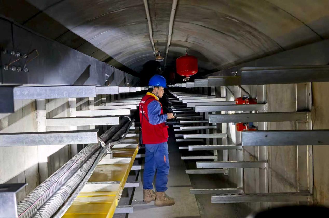 国网海东供电公司员工在地下电缆隧道排查电缆设备隐患。年卫花 摄