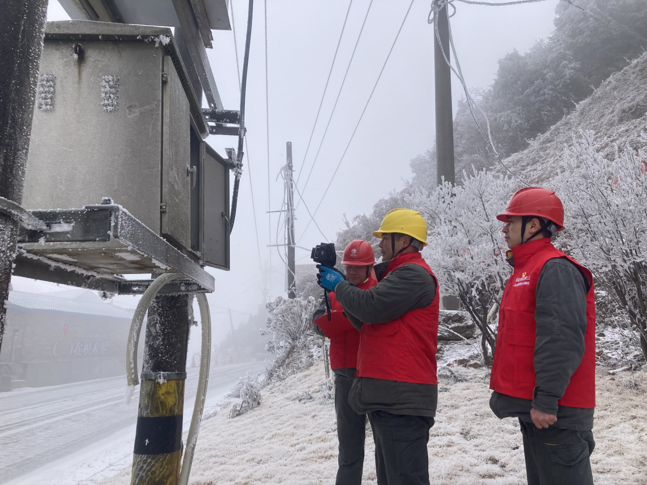 供电保障,源头为要。该公司变电运维团队对110千伏梅子湾变电站开展全方位专项巡视,细致核查主变、开关等核心设备运行状态,通过红外测温仪精准检测设备关键部位,全面排查发热、渗漏等隐患,从供电源头筑牢电网安全基础。针对雪峰山片区高海拔线路覆冰风险,该公司组建专项特巡小组,对10千伏雪峰线车力溪支线、10千伏雪峰山林场支线等重点线路开展“拉网式”巡查,重点监测导线覆冰厚度、绝缘子状态及杆塔稳固性,实时掌握运行动态,发现隐患及时除冰处置,确保线路通道畅通。与此同时,国家电网湖南电力(雪峰飞燕)东方红共产党员服务队深入雪峰山乡村,开展冬季用电安全专项服务。工作人员走村入户,检查室内线路、开关插座等用电设施,排查私拉乱接、线路老化等隐患,现场讲解安全用电常识与故障应急处理方法,手把手指导取暖设备正确使用,以“零距离”服务筑牢民生用电防线。