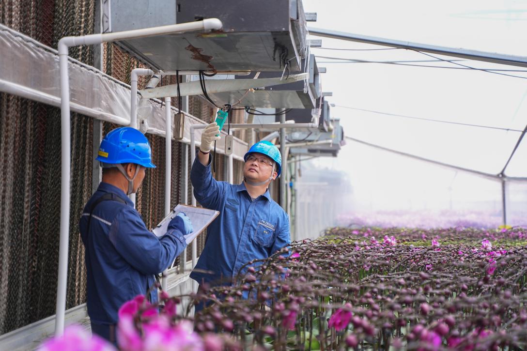 花海人流中,几位身着蓝色工作服的供电人员在不被人注意的角落忙碌着,认真检查线路、设备。“针对花卉生产、销售用电特点,我们提前制定专项保障计划,从隐患排查、动态监测到应急处置全链条发力。”南方电网广东电网公司东莞东区供电局(简称“南网东莞东区供电局”)清溪供电服务中心计量运维及用电检查二班高级作业员钟伟光介绍,供电团队提前对基地配电线路、开关设备及内部用电设施开展拉网式“体检”,重点核查空调、风机等大功率设备的接线规范性与绝缘状况,及时消除用电隐患;同步优化应急保障机制,预留应急电源快速接入通道,安排专人24小时动态监测用电负荷变化,确保极端天气或突发情况时电力供应不间断。针对春节销售旺季人流密集的特点,该局还额外增派巡视力量,及时响应用电诉求,让每一株蝴蝶兰都能在稳定电力支撑下如期盛放,也让市民选购年花的体验更舒心。