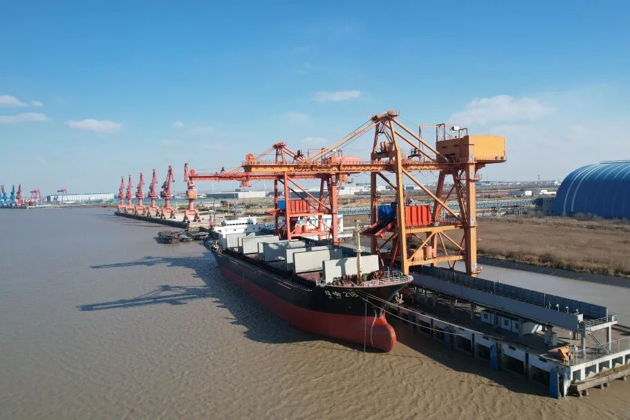 厂区门口的春联早已张贴整齐,红灯笼在寒风中摇曳,年味渐浓之际,一艘载满保供煤的货轮稳稳靠泊在电厂专用码头。码头值班负责人王立民向记者介绍,这里紧邻入海口,早年泥沙淤积严重,仅能通行2000吨级船舶。陈家港电厂建设期间疏浚土方超2100万立方米,如今2万吨乃至3.5万吨级货轮都能顺利停靠。他来自天津,脚下这片滩涂,早已成了他另一个“家”。不远处,巨大的煤炭抓斗在夜色中有节奏地起落,煤炭通过绵延的输煤栈桥源源不断地送入煤场,整个过程流畅而高效,为机组的“年夜饭”做好了充足准备。