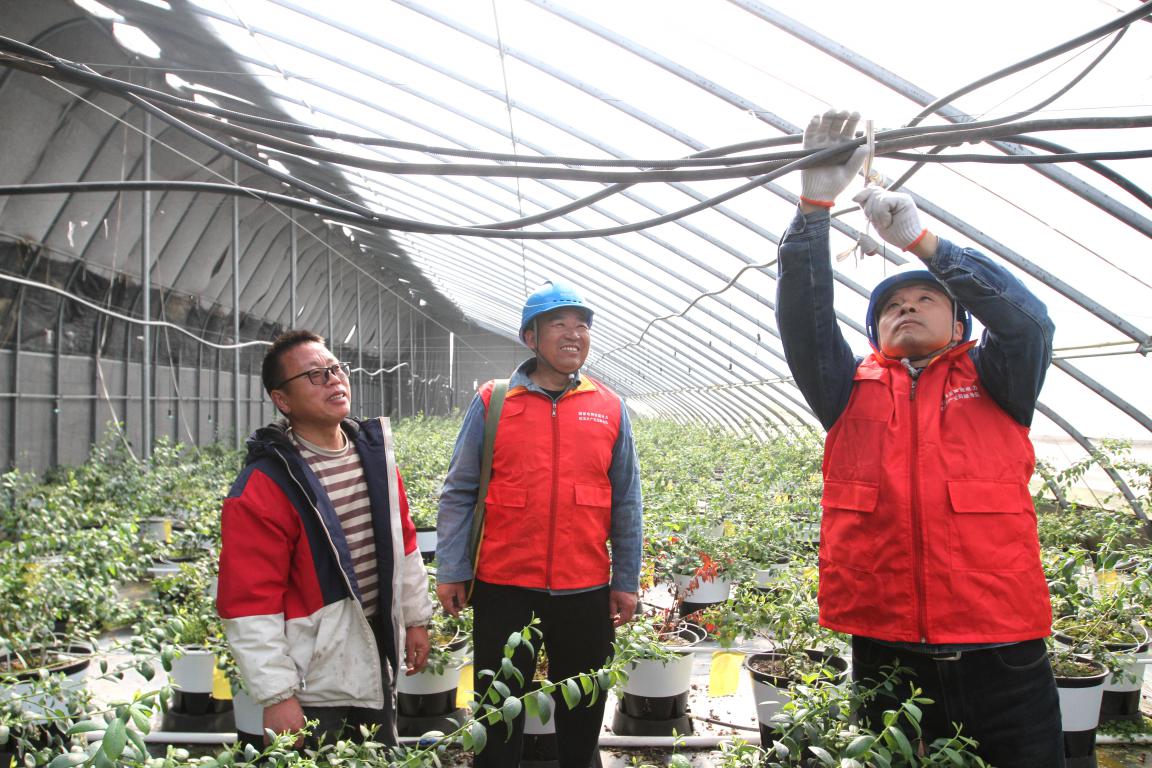 淮北供电公司皖美共产党员服务队队员排查农场用电隐患。李伟 摄