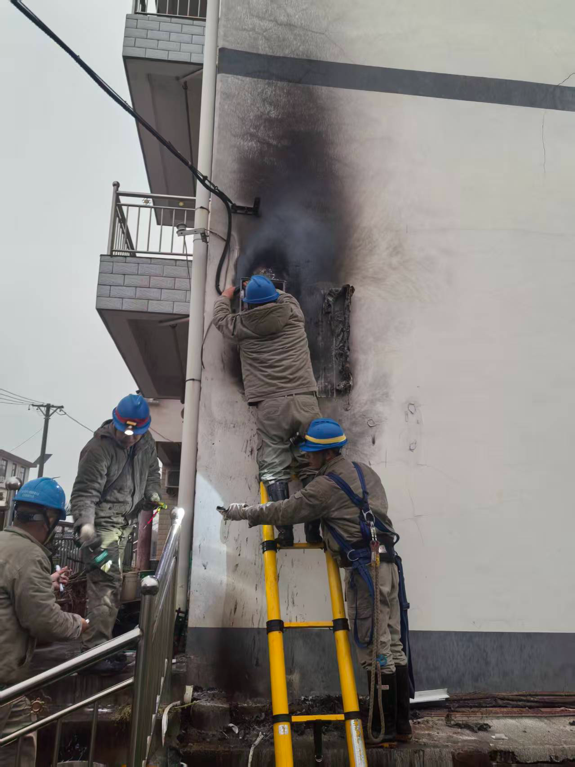抵达现场后,抢修人员发现起火表箱严重损毁,周边墙面被浓烟熏黑,部分线路绝缘层因高温熔化,加之雨水持续浸润,存在漏电及短路风险。结合湿滑地面与阴雨视线的实际情况,抢修人员第一时间拉起警戒带疏散周边居民,在做好防滑、防触电防护后,仔细排查确认无复燃隐患。
