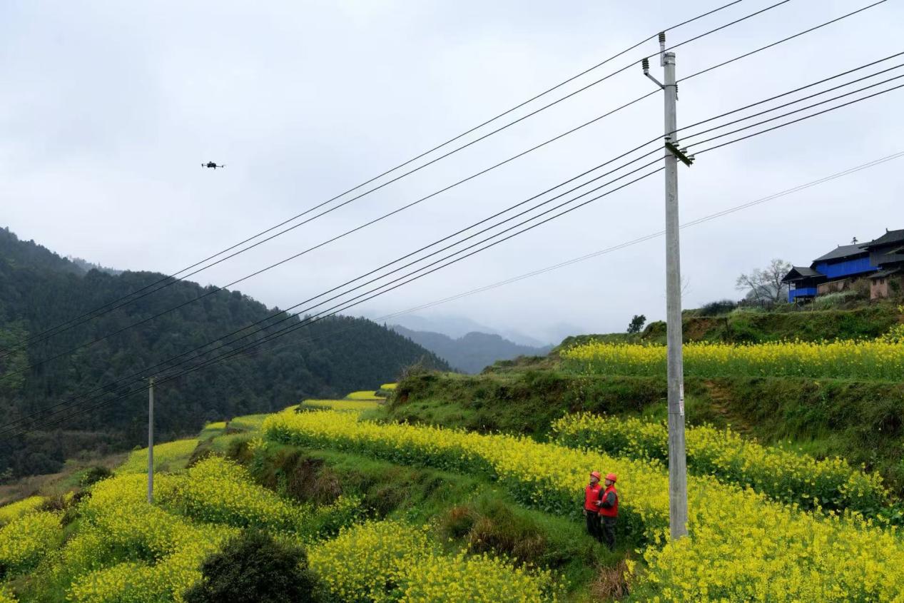 中国能源新闻网讯(刘章 尹铂泉)“无人机已就位,准备起飞巡线;红外测温仪显示数据正常。”3月23日,在湖南省芷江侗族自治县碧涌镇黄畲侗寨,层层叠叠的梯田被盛开的油菜花染成金色,国网芷江县供电公司(简称“国网芷江供电”)碧涌供电所的电力员工穿梭于花海云雾间,正利用数字化手段对10千伏碧涌2线黄畲支线开展立体巡检,为这幅绝美的侗乡春耕图“保驾护航”。