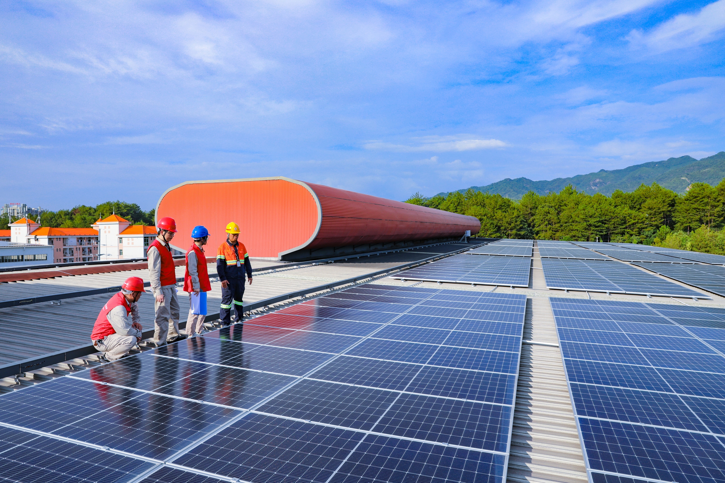 国网上杭县供电公司专业技术人员指导工业园区企业科学运维光伏发电设施。