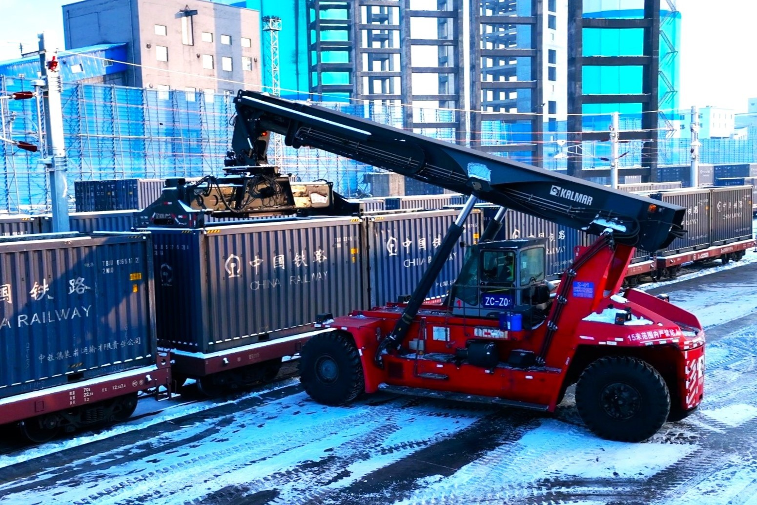 图为新疆能源火车集装箱快线装车现场