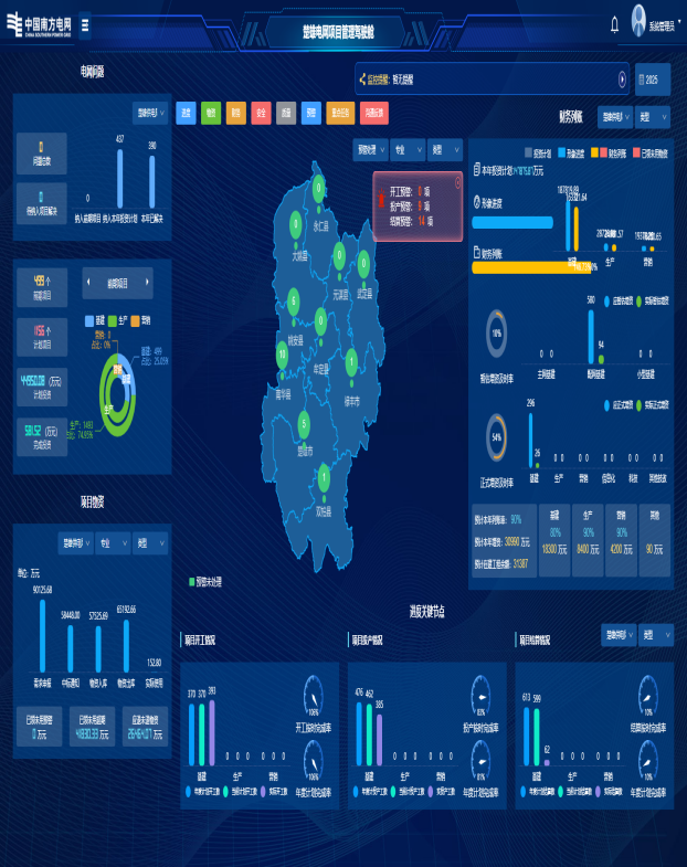 以数驭效,精准致远。“项目管理驾驶舱”实现一屏总览、一键穿透,管理人员在办公室就能实时掌握每个项目的投资进度、施工进展、财务列账、资金支付和资产转固情况,精准定位并监督解决问题。该局励精图治,不断完善,希望在项目管理领域为南方电网提供减负样板,切实为项目管理、结算减负增效。