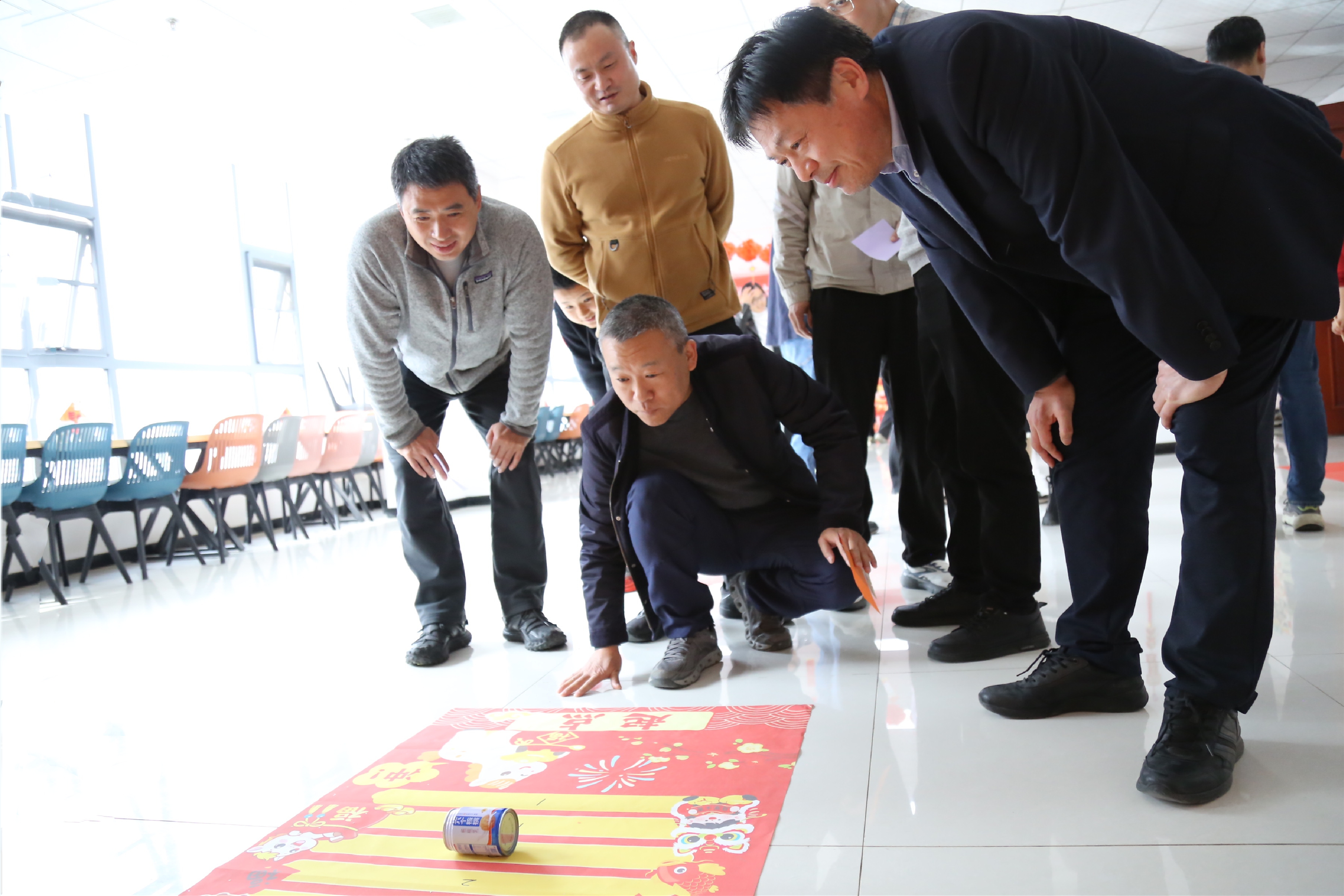 除了传统的猜灯谜,各分工会还设置了妙趣横生的互动游戏环节。“投壶”考验手眼协调,参与者屏息凝神,手起箭落,引得阵阵喝彩;“套圈”区排起了长队,大家瞄准目标,一试身手;“运汤圆”接力赛更是将活动推向高潮,职工们手持托盘,小心翼翼地运送“汤圆”。