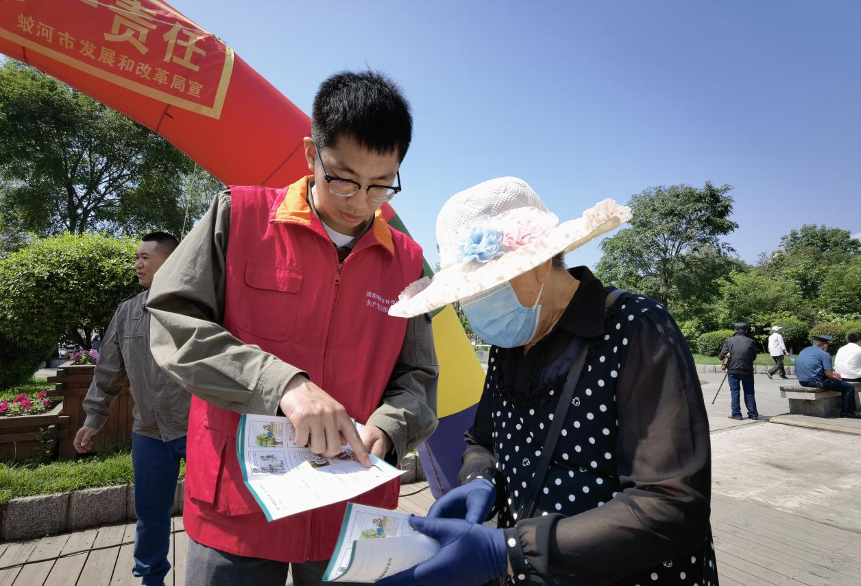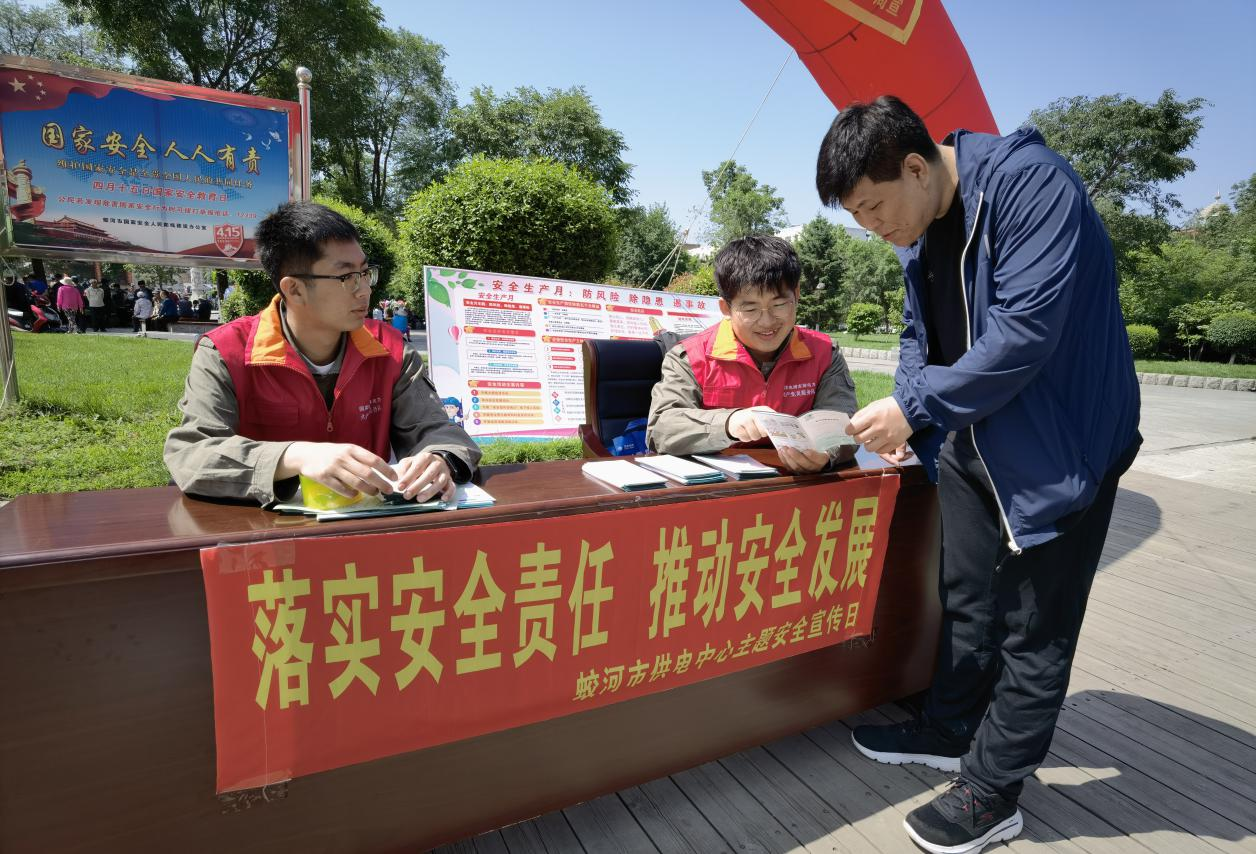 蛟河市供电中心高度重视本次活动,组织生产党支部党员服务队与蛟河市政府相关部门在人流量较大的人民广场开展安全生产月宣传活动,通过张贴《电力安全宣传海报》、发放《用电安全宣传手册》以及印有安全用电和电力设施保护知识的扑克牌、环保购物袋等,现场普及讲解日常安全用电常识,切实提高居民用电安全和电力设施保护意识。