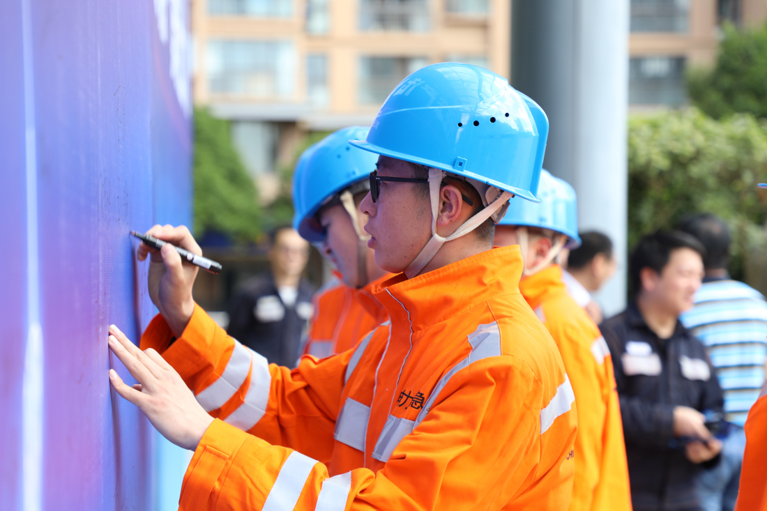 最后,参与演练的全体人员做出了“遵守安全生产法 当好第一责任人”的安全承诺,并在背景墙上签名。